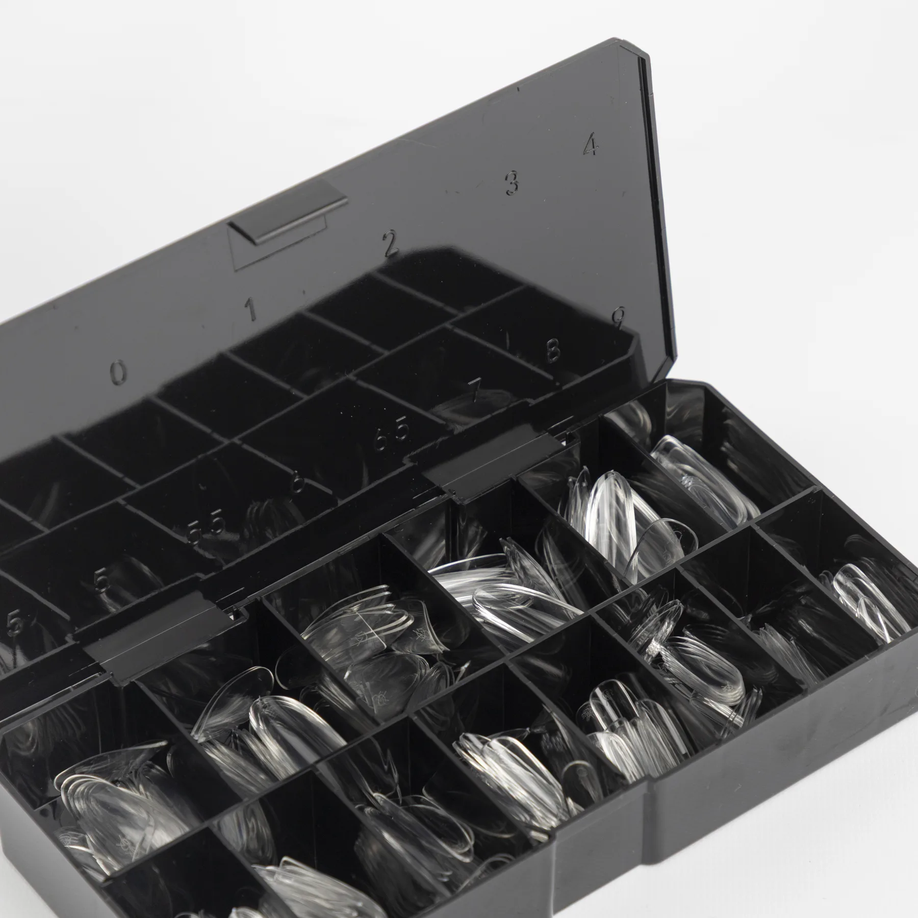 Caja organizadora con 280 tips para soft gel.